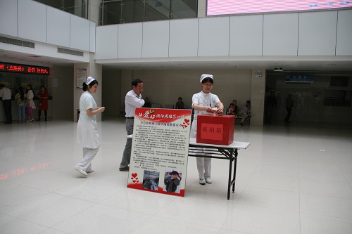 5月20日,我院为患有白血病的管中海小朋友举行了爱心捐款活动,在得知管中海小朋友的不幸遭遇后,医院工会迅速在全院范围内发起倡议,号召大家贡献一份力量。活动当天,很多职工闻讯赶到募捐现场,纷纷伸出援助之手,奉献自己的一份爱心,充分发扬了卫生人乐善好施的传统美德。募捐现场很多来院就诊的群众也积极参加,踊跃捐款。