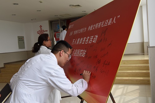 我院开展“拒绝不文明行为、争做文明有礼泾县人”集体签名活动