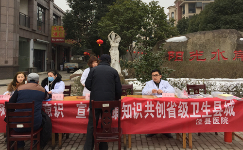 为进一步促进我县创建省级卫生县城工作深入开展,广泛普及居民健康知识,2月9日上午,我院联合县创卫办在阳光水岸小区开展“树立健康意识 宣传健康知识 共创省级卫生县城”义诊健康咨询活动,为居民免费测血压,健康咨询,普及卫生知识,倡导健康的生活方式,提高居民的健康素养。本次义诊活动共计测血压80余人,接受健康咨询100余人次,发放健康宣传资料300余份,活动的开展受到居民的一致好评。