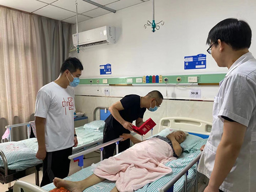 在建党100周年即将到来之际,受党委书记、院长王昭宝之托,6月28日,党委副书记、工会主席李俊,党政办主任万涛等一行,分别走访慰问医院部分“光荣在党50年”老党员及退休党员,向他们转达党组织的关怀,并代表院党委向他们致以诚挚问候和崇高敬意。