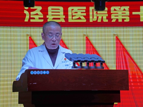 会议在庄严的《中华人民共和国国歌》中拉开序幕。会上,院长潘志刚作 2025 年度医院工作报告,系统回顾了 2025 年医院在医疗质量提升、服务流程优化、学科建设推进、人才队伍培养等方面取得的显著成绩,并对 2026 年重点工作作出部署,强调要锚定高质量发展核心目标,夯实医疗根基,创新服务模式,持续提升群众就医获得感